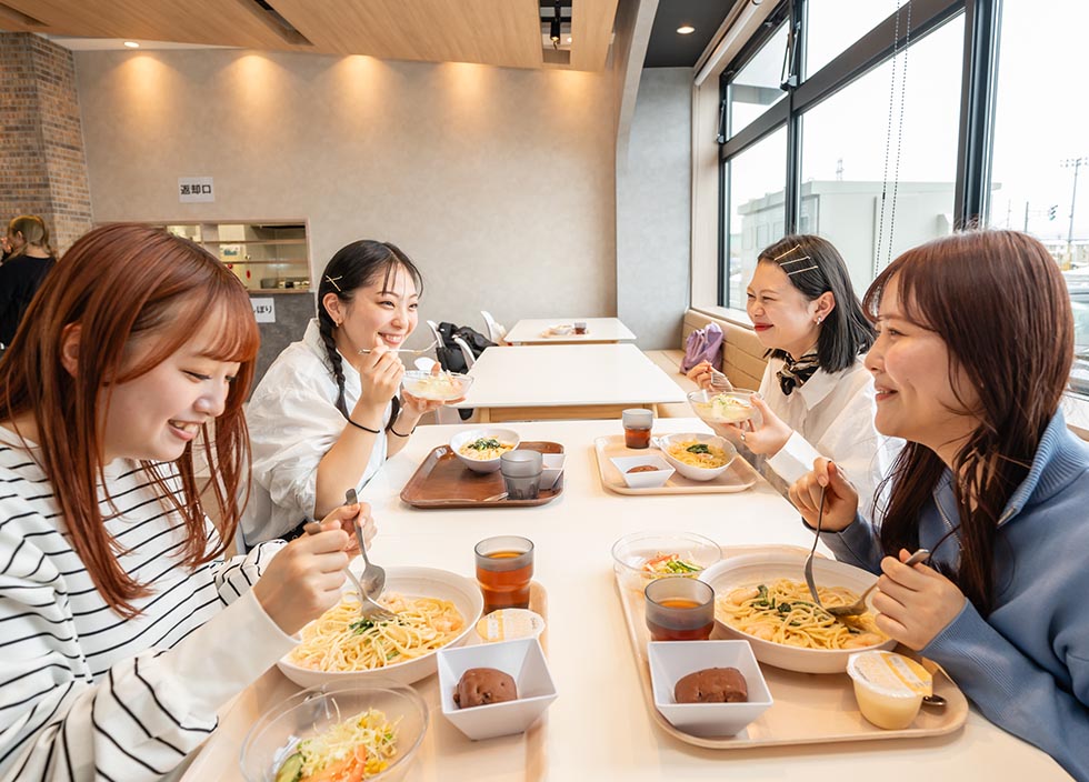 クォーターズカフェではワッフルとロコモコ丼が人気♪ランチはもちろん、スイーツもご用意しています。カフェでまったり、待ち時間も退屈しない!